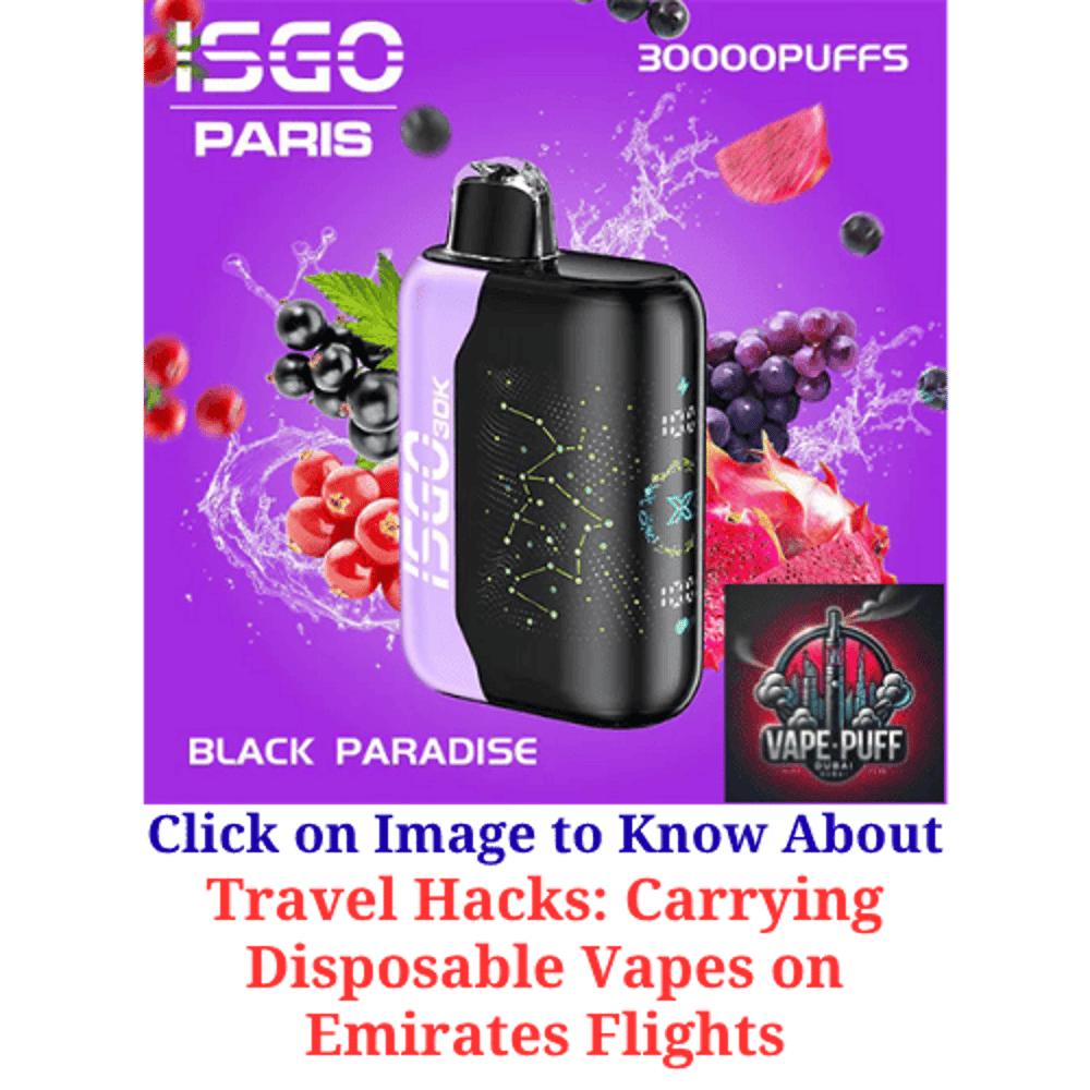 Carrying a disposable vape on an Emirates flight is perfectly doable if you follow the airline’s rules and UAE legal requirements. Choosing a high-capacity, MoIAT-approved device like the ISGO Bar Paris X 30000 Puffs ensures you enjoy your trip without worrying about performance, legality, or safety.